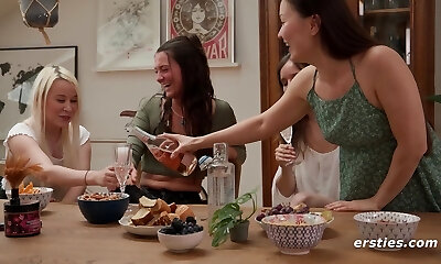 Five Amazing Inexperienced Lesbians Take Turns Riding the Sybian